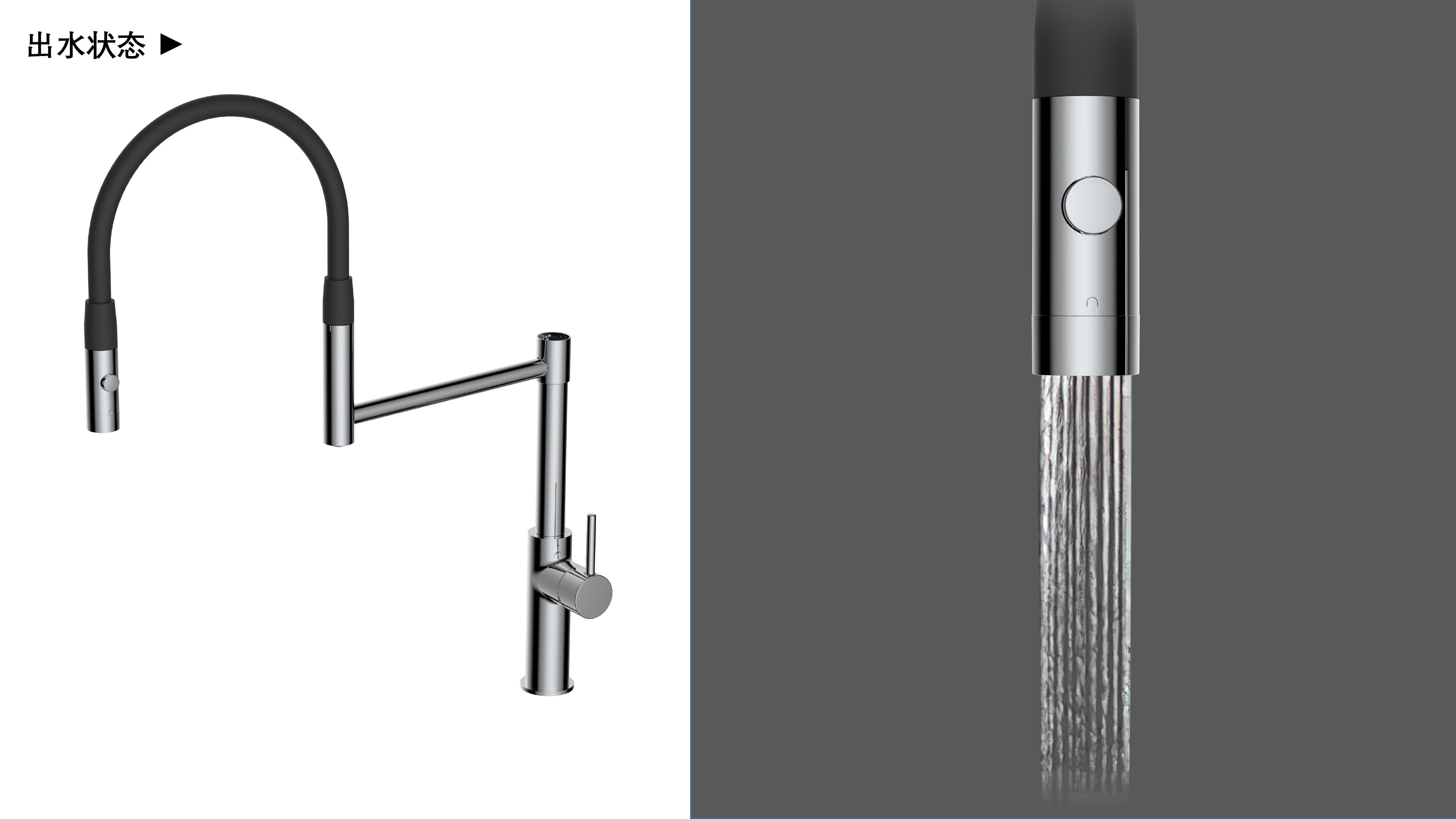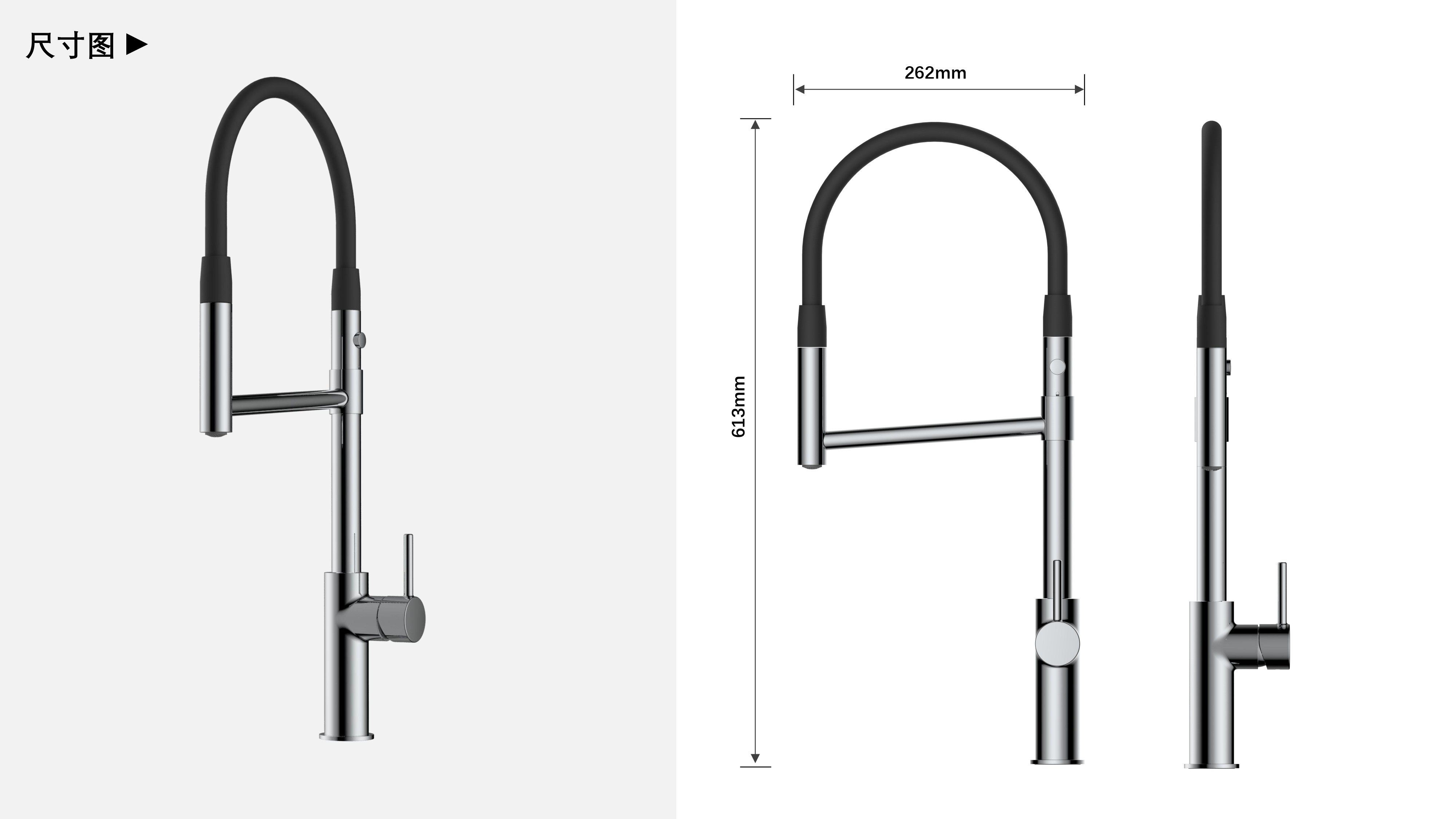 cUPC/ NSF61/ AB100/ NSF372/ Lead Free/ ADA認證;磁吸抽拉廚房龍頭;磁吸抽拉頭可旋轉展開(kāi)使用,不用時(shí)旋轉回原位磁吸固定;兩種出水可根據需求切換