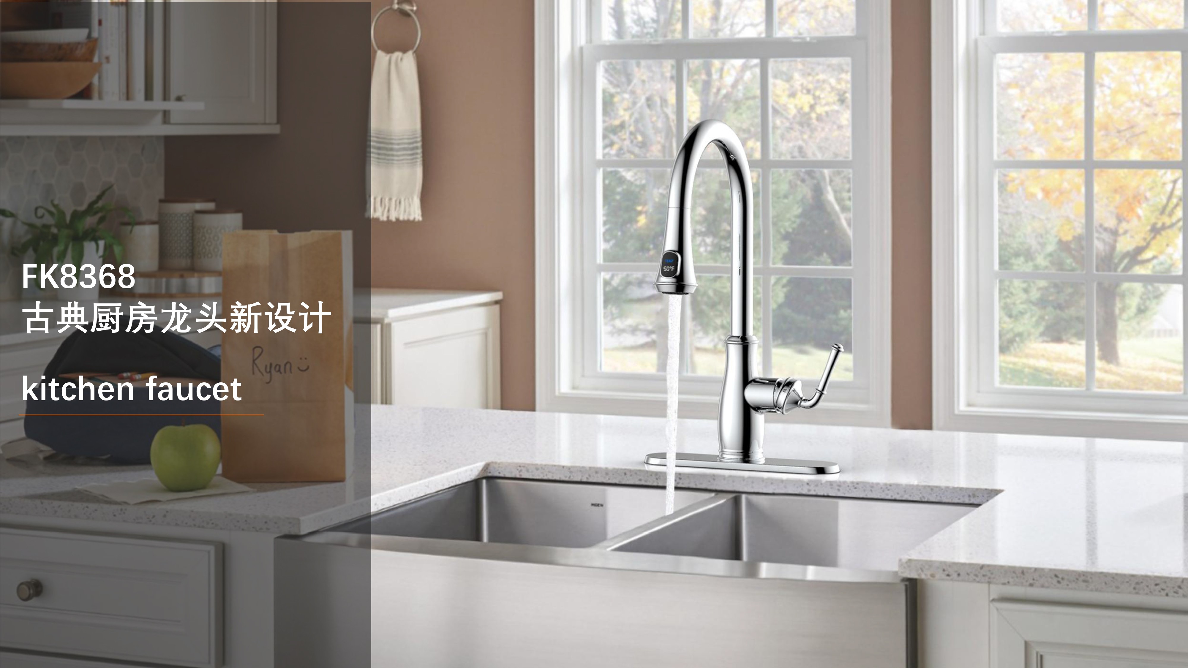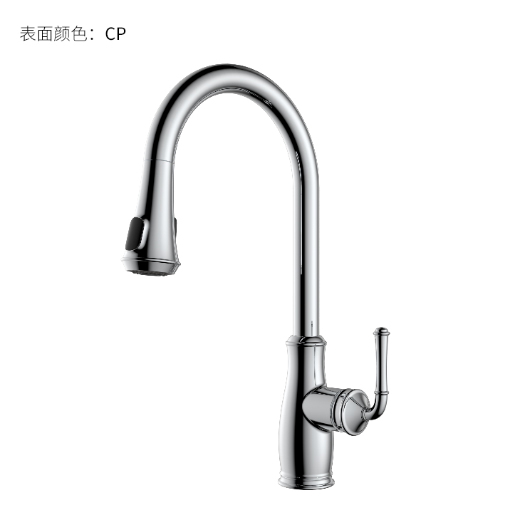 古典廚房龍頭;抽拉頭隨意抽拉多角度使用;采用全密封防水端頭;水力發(fā)電技術(shù),智能芯片溫度數顯-冷水TEMP顯示藍色、溫水TEMP顯示綠色、熱水TEMP顯示紅色